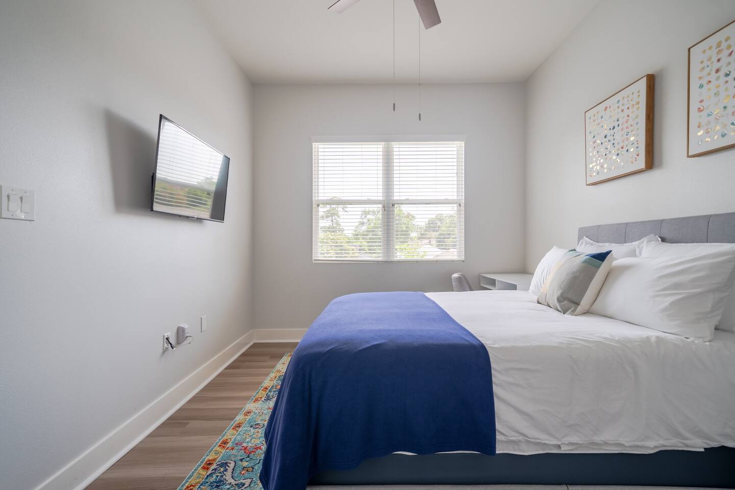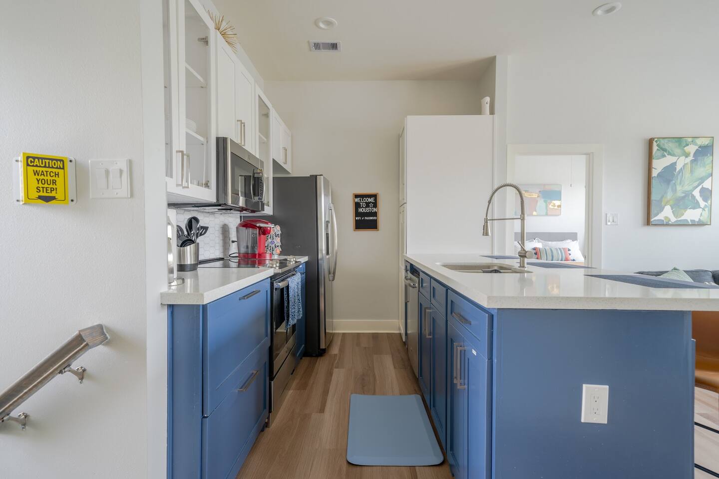 We want you to be reassured that we are taking the necessary steps to help our guest stay safe by thoroughly cleaning and disinfecting the apartment between guests. This includes commonly touched and used items and surfaces including remote controls, handles, light switches, etc. As an experienced medical worker I adhere to safe guidelines and protocols to keep patients safe from the spread of germs and cross contamination on a daily basis so I will do my part to pass these same practices on to my guests. ***Sleeping Arrangements*** -- Guest Bedroom 1 w/Private Bathroom – Queen Bed (Sleeps 2) -- Guest Bedroom 2 w/Private Bathroom – Queen bed (Sleeps 2) ***Living Space*** -- Open Kitchen, Breakfast Bar, Living Room (plenty of seating) -- Small Patio in Backyard ***Parking*** -- One parking space in garage below apartment -- Parking available on property driveway in front of garage -- Please leave parking spaces in front of main house open ✔ Fully Equipped Quartz Countertop Kitchen ✔ Keurig coffee maker and all new Stainless Steel appliances ✔ Hi Speed Wifi ✔ 4K HD Smart TVs conveniently located in every room ✔ Free Access to Netflix, Amazon Prime ✔ Free On Site Parking ✔ Private Laundry Room ****CENTRALLY LOCATED!!**** 0.6 miles (2 min) to University of Houston 0.6 miles (2 min) to Texas Southern University 3.7 miles (11 min) to Rice University 2.9 miles (8 min) to Texas Medical Center 4.6 miles (8 min) to Downtown Houston 3.8 miles (10 min) to Minute Maid Park (Astros) 4.8 miles (8 min) to Toyota Center (Rockets) 4.2 miles (11 min) to NRG Stadium (Texans) 5.4 miles (12 min) to George R. Brown Convention Center 2.6 miles (7 min) to Museum District 3.1 miles (8 min) to Houston Zoo 9.0 miles (15 min) to Hobby Airport 22 miles (25 min) to George Bush Intercontinental Airport