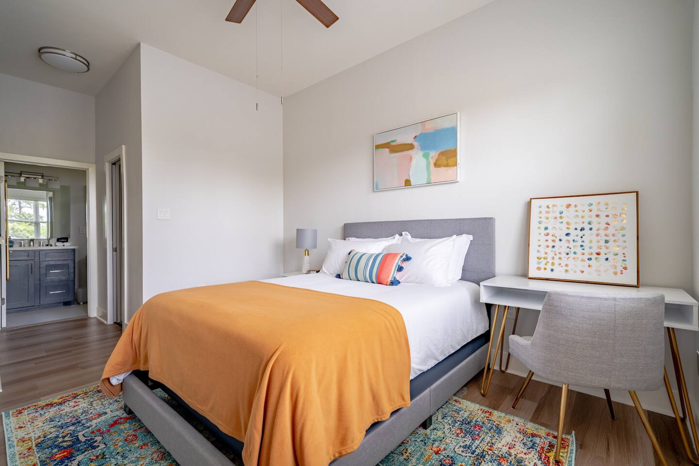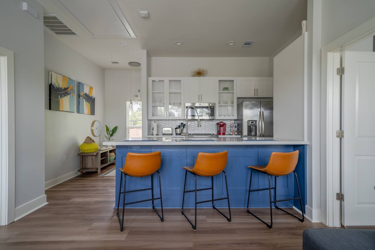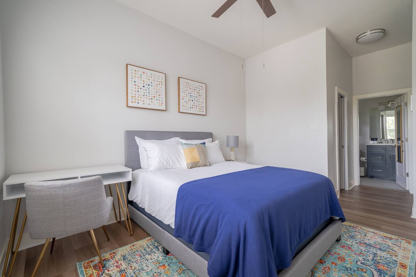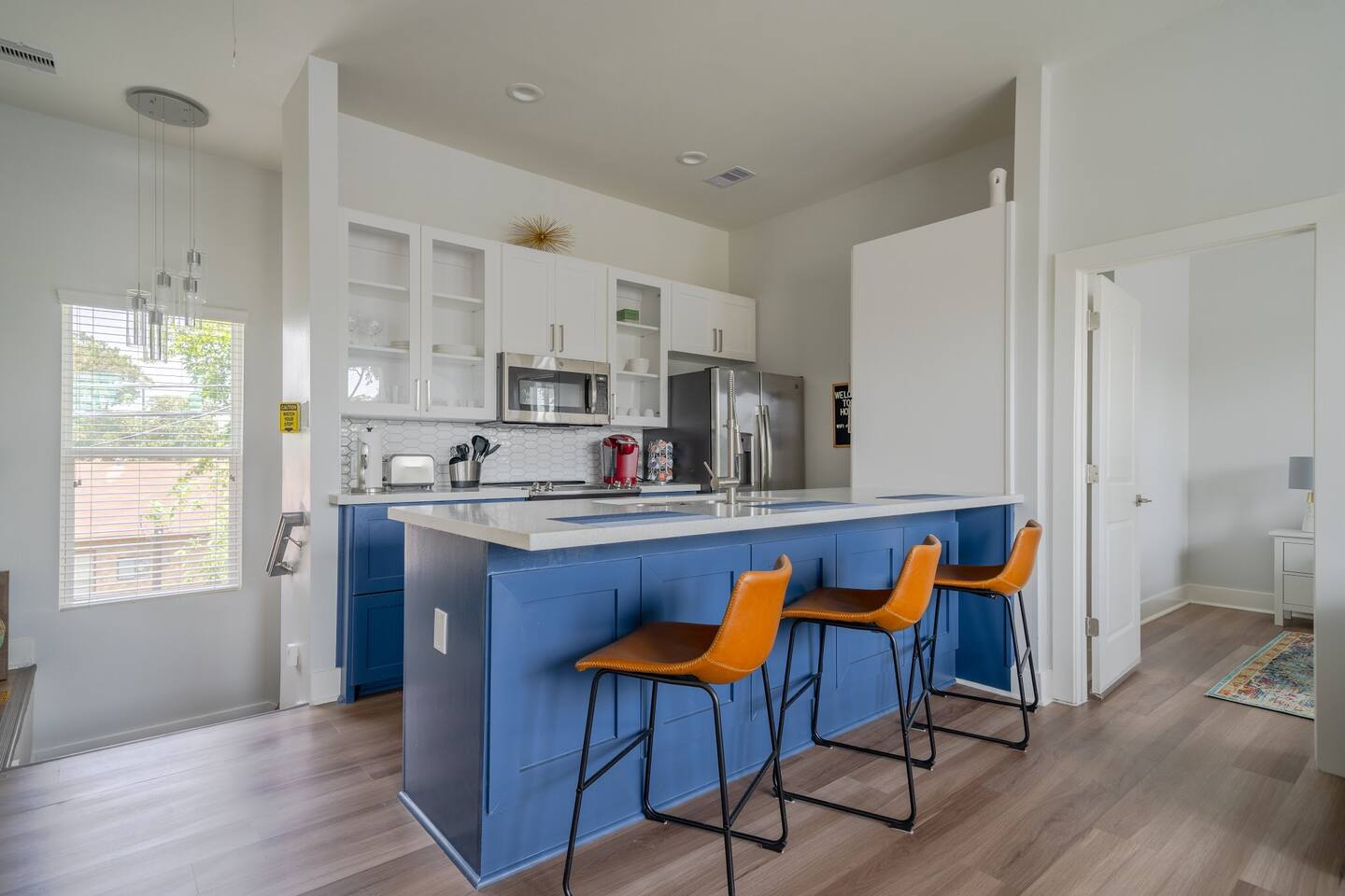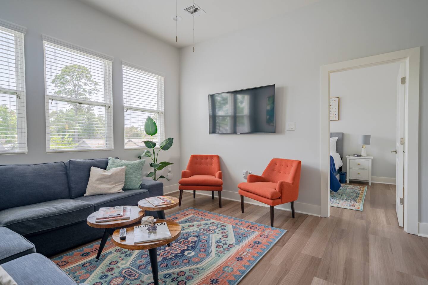 Our stylishly appointed, private carriage house offers a cozy retreat located less than 10 minutes away from Houston's most popular attractions! With a fully equipped kitchen, laundry/mudroom, 2 separated bedroom suites, each with their own private bathroom, walk in closets and Roku SmartTVs in every room, this space provides all the comforts of home! This gem is safely tucked away behind our personal bungalow style home.
