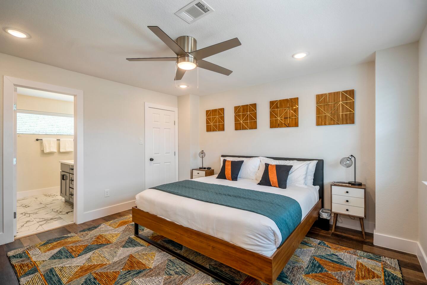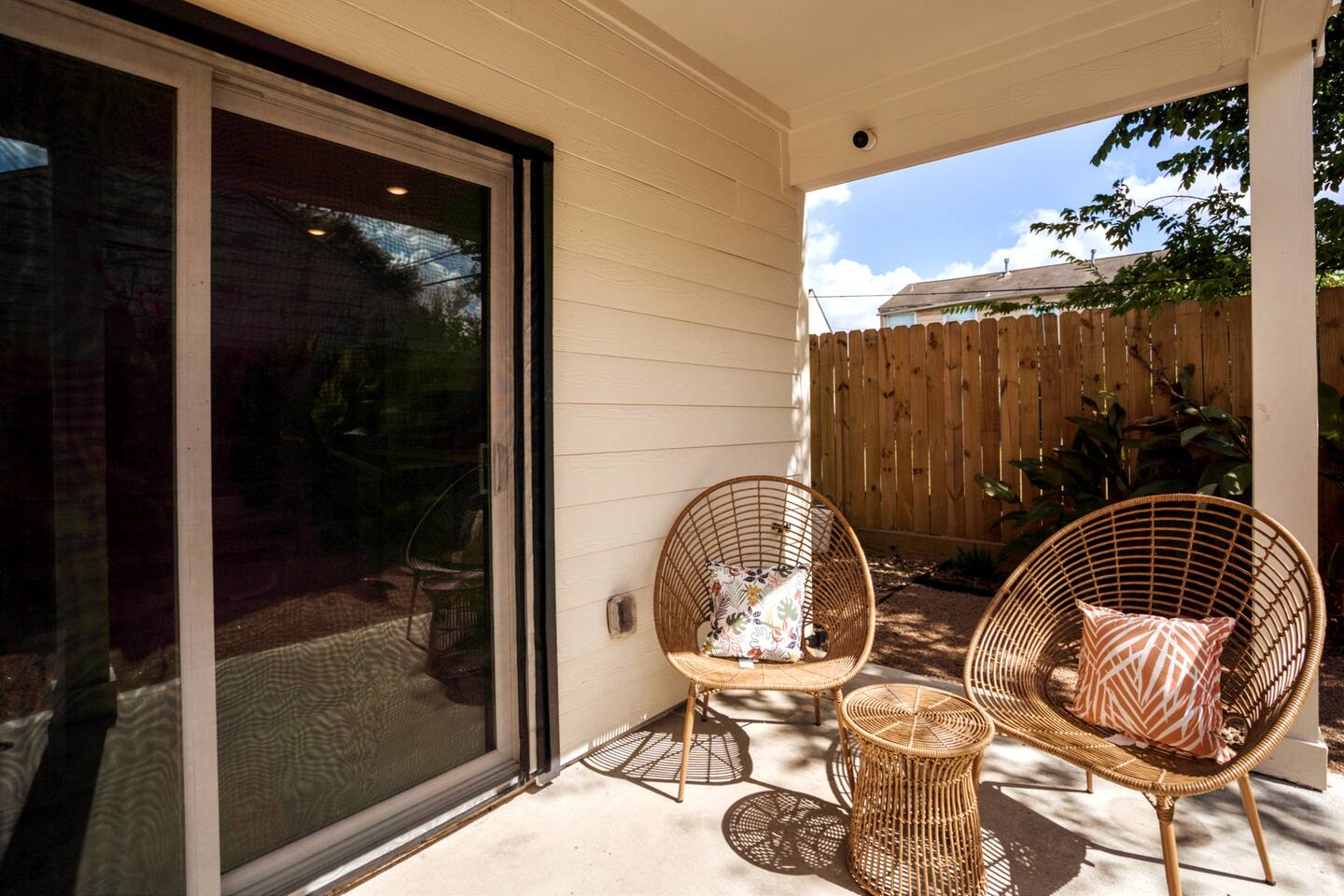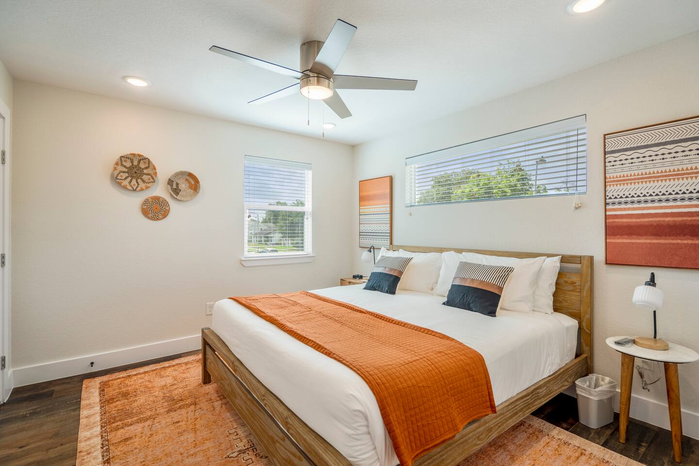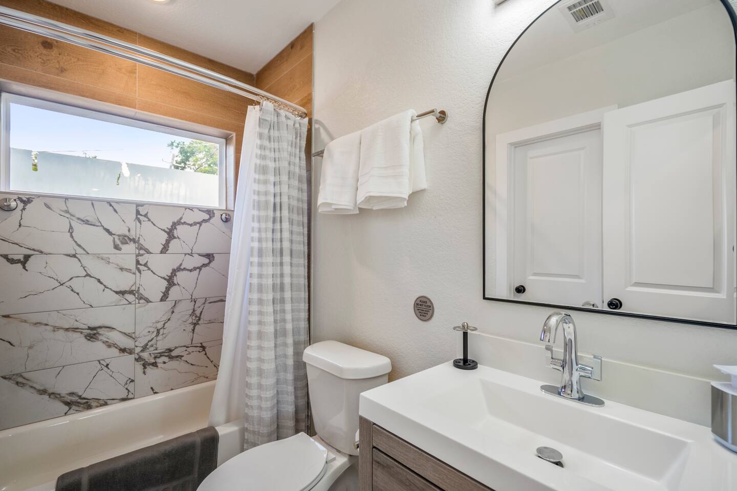 This property contains 2 separate living units on one lot. This listing is for the both the primary home located in front and the ADU in back. PRIMARY HOME: -- Guest Bedroom #1 Queen Bed w/ Private Bathroom – (Sleeps 2) - DOWNSTAIRS -- Guest Bedroom #2 King Bed w/Private Bathroom – King bed (Sleeps 2) - UPSTAIRS -- Guest Bedroom #3 w/Private/Semiprivate Bathroom - King Bed (Sleeps 2) - UPSTAIRS -- Flex Space - w/Semi-Private Bathroom Double Twin Day Bed (Sleeps 2) - UPSTAIRS BACKYARD ADU: -- Guest Bedroom #1 Queen Bed w/ Private Bathroom – (Sleeps 2) - UPSTAIRS -- Guest Bedroom #2 King Bed w/Private Bathroom – King bed (Sleeps 2) - UPSTAIRS -- Living Room Pullout Sofa Queen Bed - DOWNSTAIRS (Sleeps 2). Semiprivate Bathroom -UPSTAIRS ***FEATURES*** ✔ Welcome Snacks ✔ Fully Equipped Quartz Countertop Kitchen ✔ Keurig coffee maker, coffee, teas, sugars, creamer ✔Stainless Steel appliances ✔ Hi Speed Wifi ✔ HD Smart TVs conveniently located in every room ✔ Free On Site Parking ✔ Private Laundry Room with large capacity washer/dryer ✔ Board Games ✔ Arcade games ✔ Record Player ✔ Backyard oasis ****CENTRALLY LOCATED!!**** 0.3 miles (2 min) to University of Houston 0.2 miles (2 min) to Texas Southern University 3.3 miles (11 min) to Rice University 3.5 miles (10 min) to Texas Medical Center 3.1 miles (8 min) to Downtown Houston 3.1 miles (9 min) to Minute Maid Park (Astros) 2.6 miles (8 min) to Toyota Center (Rockets) 6.4 miles (13 min) to NRG Stadium (Texans) 3.2 miles (10 min) to George R. Brown Convention Center 3.2 miles (8 min) to Museum District 3.5 miles (8 min) to Houston Zoo 8 miles (16 min) to Hobby Airport 24.2 miles (27 min) to George Bush Intercontinental Airport
