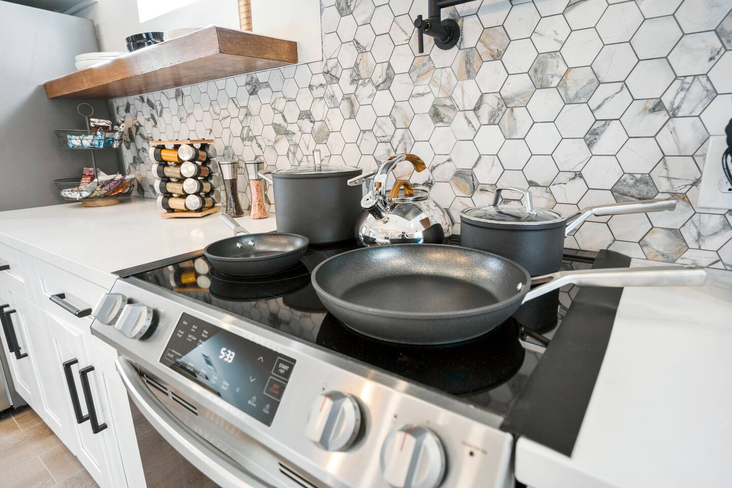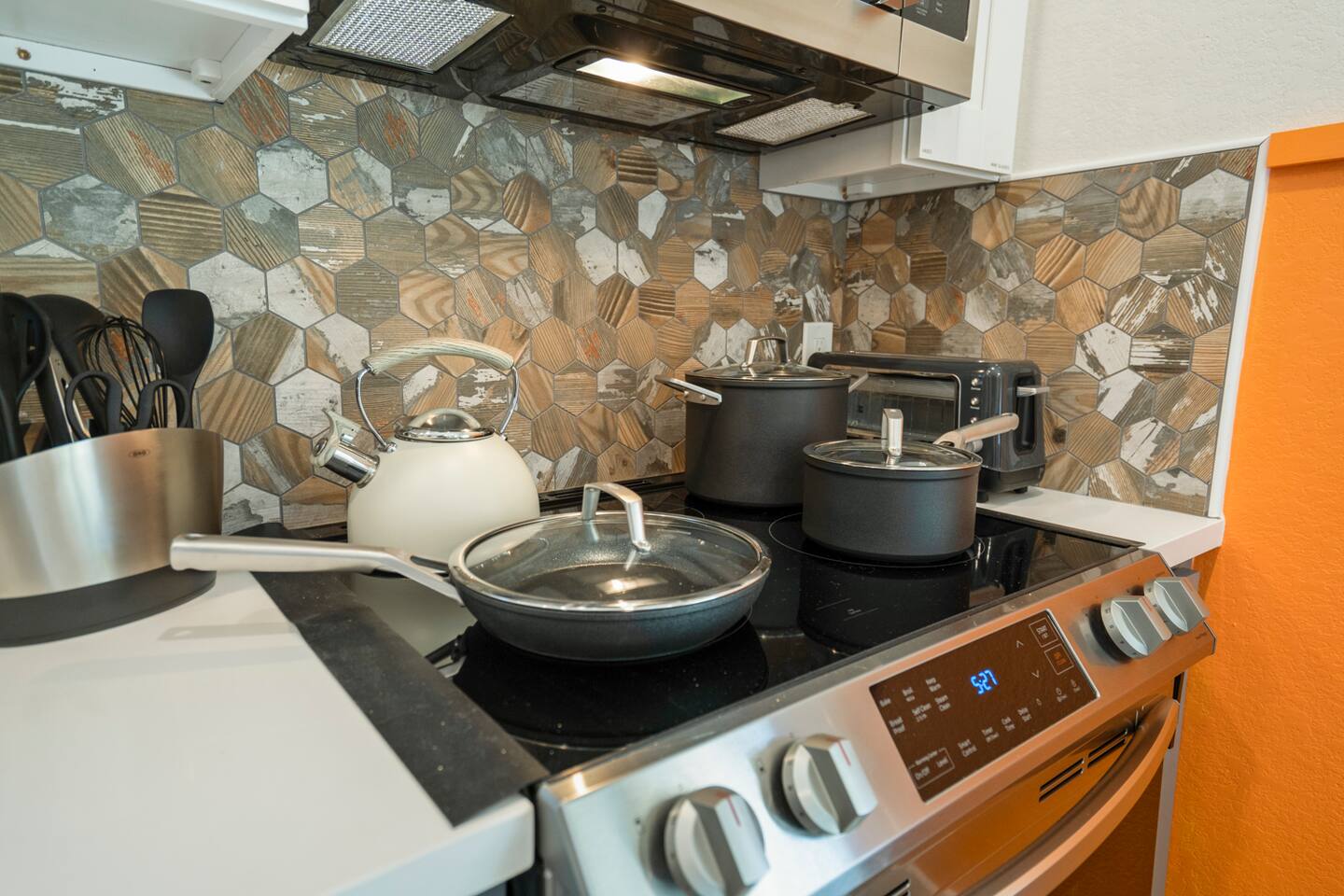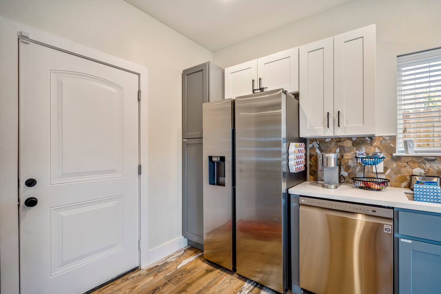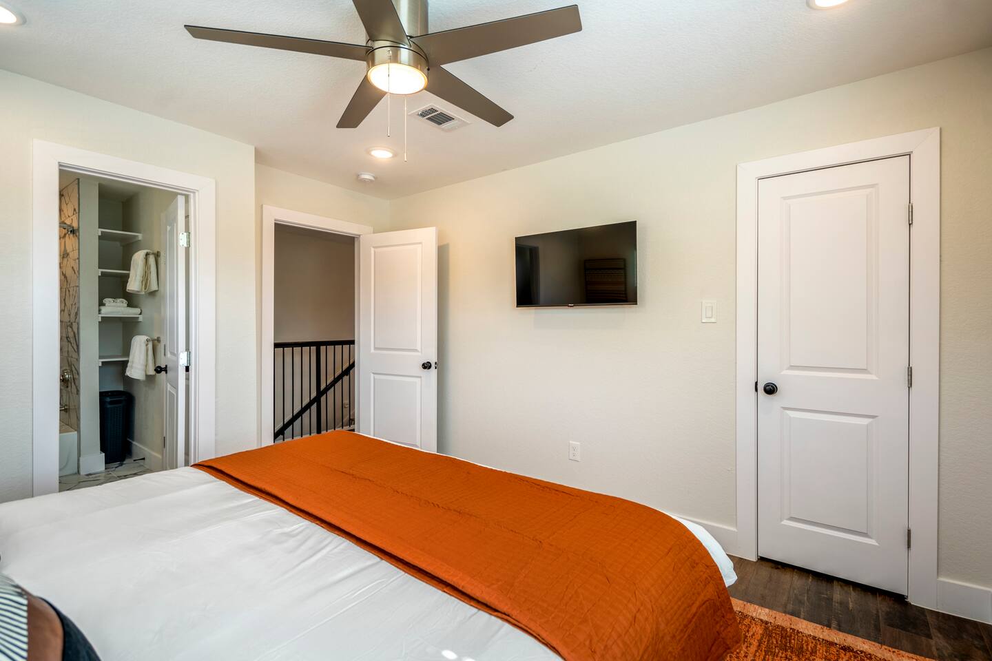 This property contains 2 separate living units on one lot. This listing is for the both the primary home located in front and the ADU in back. PRIMARY HOME: -- Guest Bedroom #1 Queen Bed w/ Private Bathroom – (Sleeps 2) - DOWNSTAIRS -- Guest Bedroom #2 King Bed w/Private Bathroom – King bed (Sleeps 2) - UPSTAIRS -- Guest Bedroom #3 w/Private/Semiprivate Bathroom - King Bed (Sleeps 2) - UPSTAIRS -- Flex Space - w/Semi-Private Bathroom Double Twin Day Bed (Sleeps 2) - UPSTAIRS BACKYARD ADU: -- Guest Bedroom #1 Queen Bed w/ Private Bathroom – (Sleeps 2) - UPSTAIRS -- Guest Bedroom #2 King Bed w/Private Bathroom – King bed (Sleeps 2) - UPSTAIRS -- Living Room Pullout Sofa Queen Bed - DOWNSTAIRS (Sleeps 2). Semiprivate Bathroom -UPSTAIRS ***FEATURES*** ✔ Welcome Snacks ✔ Fully Equipped Quartz Countertop Kitchen ✔ Keurig coffee maker, coffee, teas, sugars, creamer ✔Stainless Steel appliances ✔ Hi Speed Wifi ✔ HD Smart TVs conveniently located in every room ✔ Free On Site Parking ✔ Private Laundry Room with large capacity washer/dryer ✔ Board Games ✔ Arcade games ✔ Record Player ✔ Backyard oasis ****CENTRALLY LOCATED!!**** 0.3 miles (2 min) to University of Houston 0.2 miles (2 min) to Texas Southern University 3.3 miles (11 min) to Rice University 3.5 miles (10 min) to Texas Medical Center 3.1 miles (8 min) to Downtown Houston 3.1 miles (9 min) to Minute Maid Park (Astros) 2.6 miles (8 min) to Toyota Center (Rockets) 6.4 miles (13 min) to NRG Stadium (Texans) 3.2 miles (10 min) to George R. Brown Convention Center 3.2 miles (8 min) to Museum District 3.5 miles (8 min) to Houston Zoo 8 miles (16 min) to Hobby Airport 24.2 miles (27 min) to George Bush Intercontinental Airport