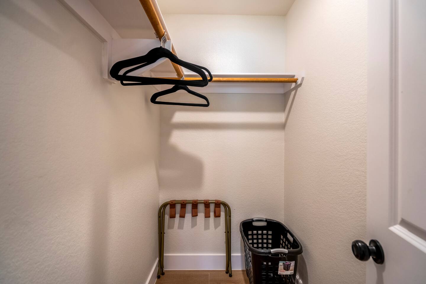 Guests have full access to both homes. Guests do not have access to the attics, labeled storage closet, or single car gargage.