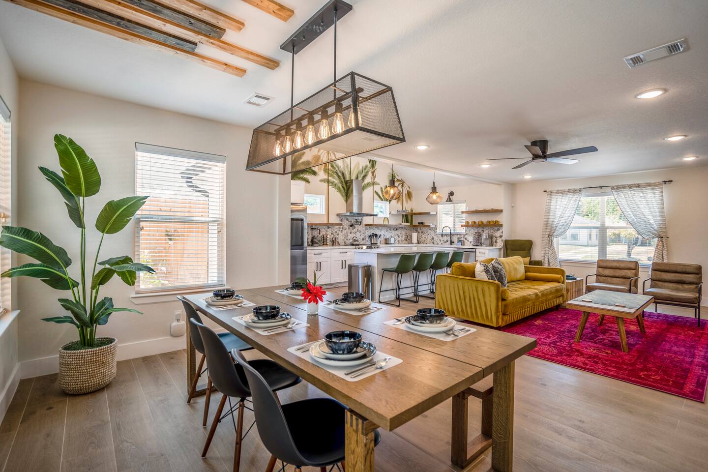 Welcome Family and Friends to our spacious 14 guest central retreat! This listing boasts not 1 but 2 homes on one property! The fully renovated primary home features 3 bedrooms 3.5 baths and 5 beds, while the newly built ADU in back houses 2 bedrooms, 2baths, 3 beds and its own kitchen and laundry facility. Get comfortable in your own space, while still being able to enjoy time together! Convene on the courtyard for fireside chats and dinners under the dreamy pergola! Our goal: 5 Star Service!
